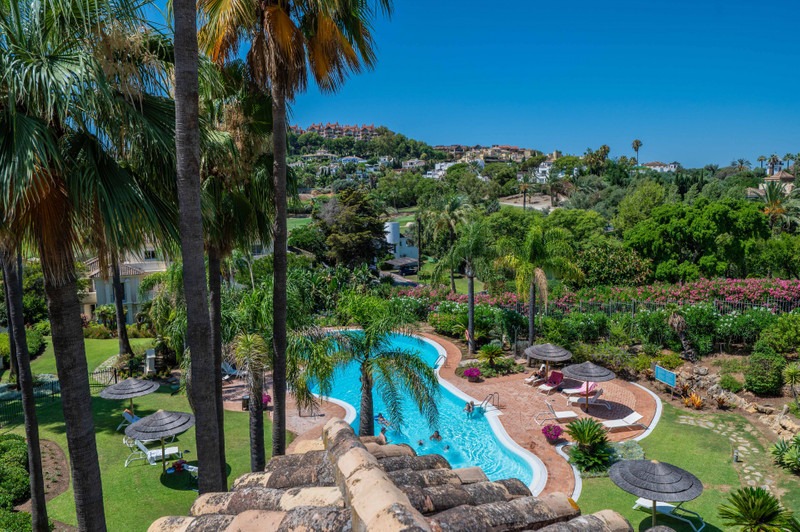 Located in the prestigious gated community of Las Alamandas, this spacious 3-bedroom duplex penthouse offers a perfect blend of luxury, privacy, and security in the heart of Nueva Andalucía — just minutes from Puerto Banús and within walking distance to renowned golf courses like Los Naranjos and Las Brisas.